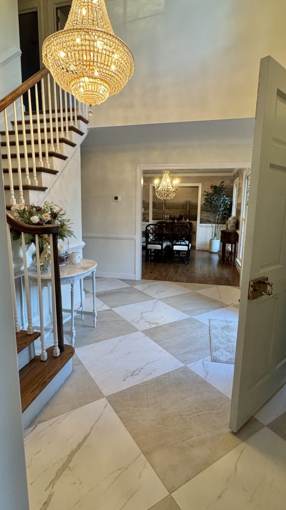 I was initially drawn to the timeless elegance of checkerboard tile after seeing stunning foyers on Pinterest. But a few clicks later, I realized many of them featured imported limestone from France or luxurious marble—beautiful, but not exactly practical for our family. For a brief moment, I did consider marble, but with two kids and a dog, I needed something more durable and low-maintenance.