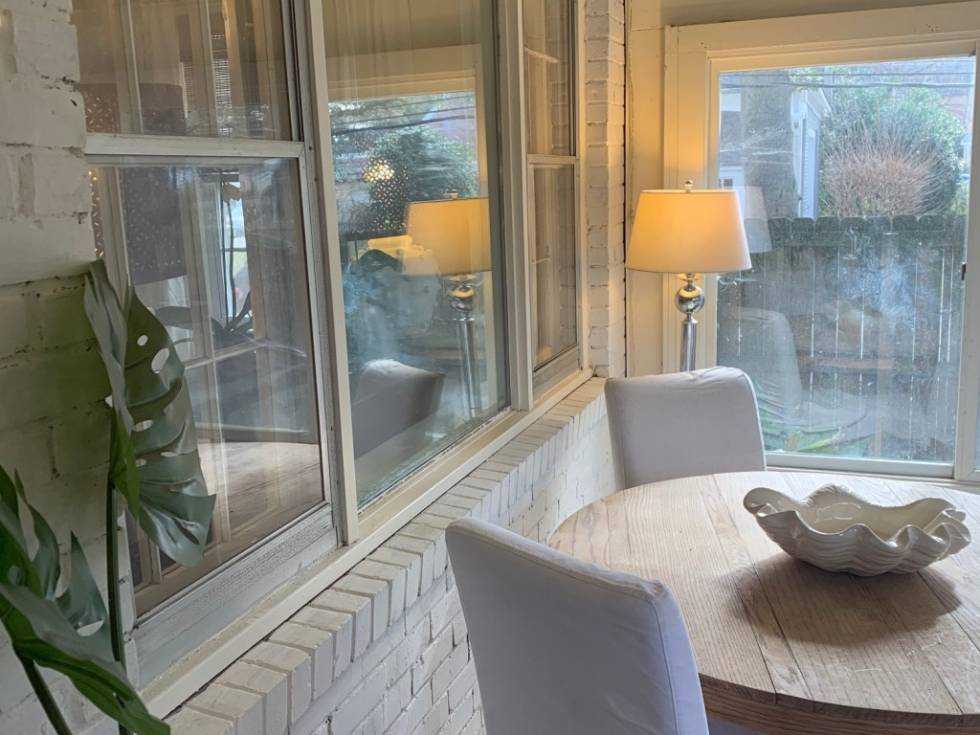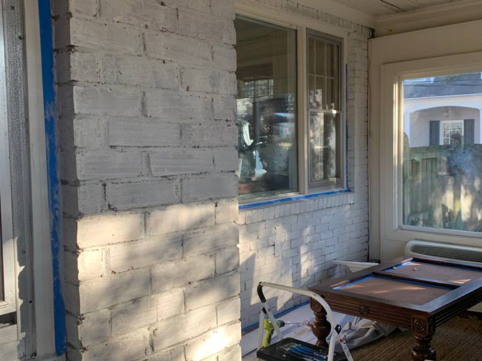 Brick sun porch painted with Romabio limewash