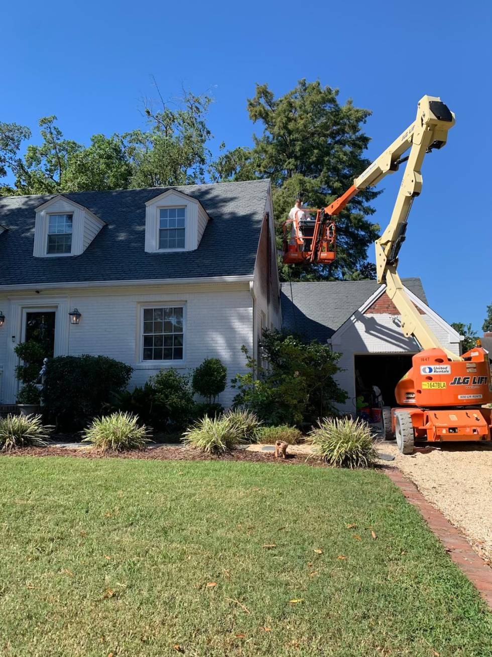 The other side of our house was too narrow to drive the lift over there, so Mike worked up the courage to use the tall ladder. He said it was fine as long as he didn’t look down.