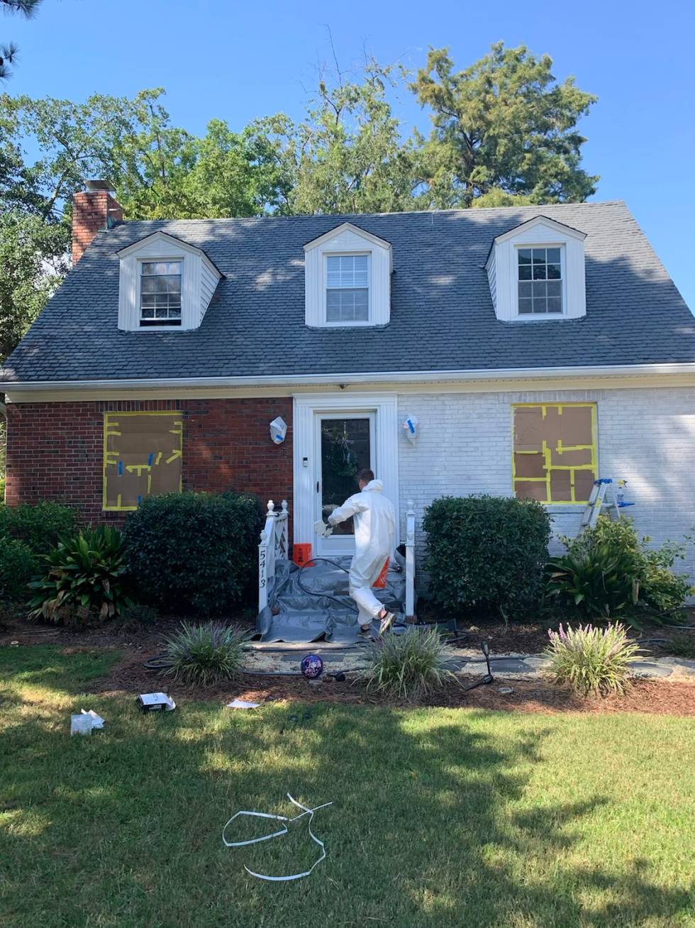 If you have new landscaping or don’t plan to trim your shrubs anytime soon, I’d also recommend covering your landscaping with a tarp. If you’re using a sprayer, the paint definitely drifts. You’ll have tiny white spots all over your plants if not.