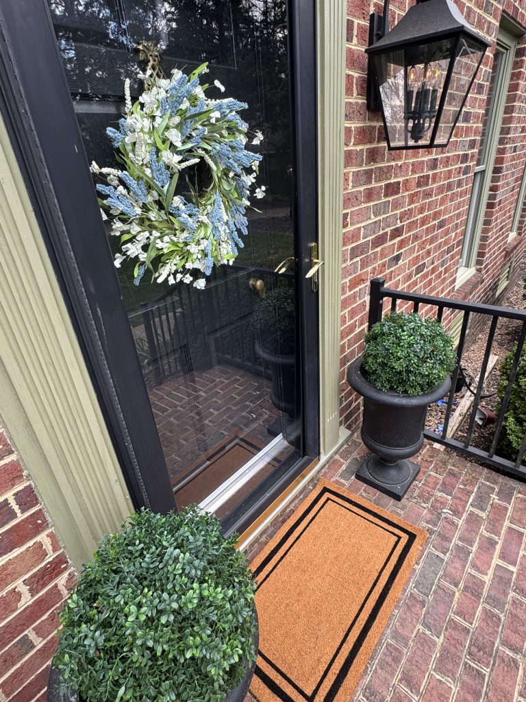 The new one I chose has such a classic pattern, and it ties in perfectly with our black exterior lights and handrail. It’s a small change, but it instantly made the front entry feel cleaner and more pulled together.