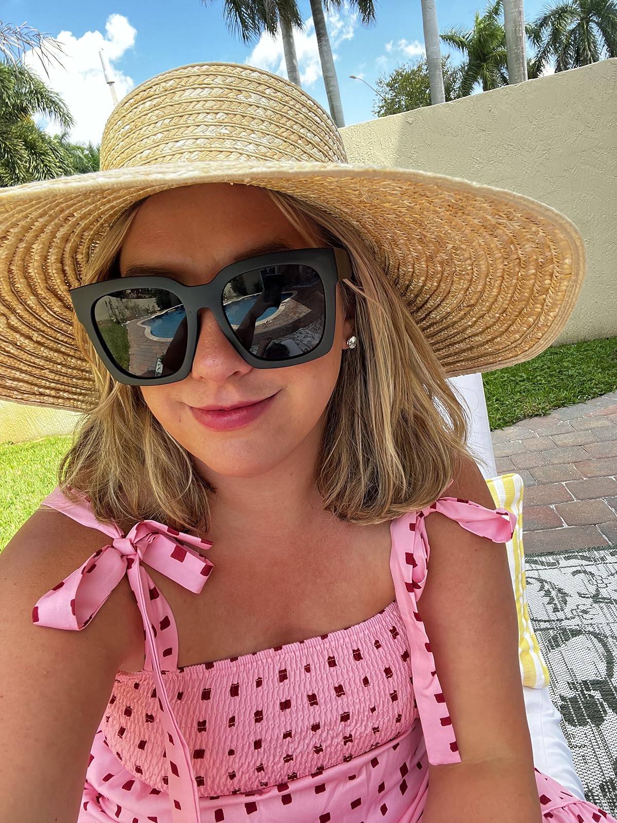 A wide-brimmed straw hat is always a Masters staple, but this year’s styles felt especially fresh. Think structured brims, playful gingham ribbons, and natural textures that add a touch of Southern charm. Not only do these hats offer much-needed shade, but they instantly elevate any outfit—whether you’re in a floral skort set or a breezy linen dress. Here’s one that I recently purchased for our spring break in Mexico – it was perfect for sitting by the pool or walking around the resort.
